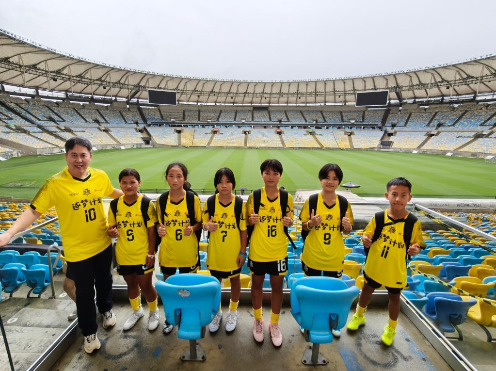 貴州榕江“逐夢(mèng)計(jì)劃”青少年足球隊(duì)在馬拉卡納體育場(chǎng)合影。受訪者供圖