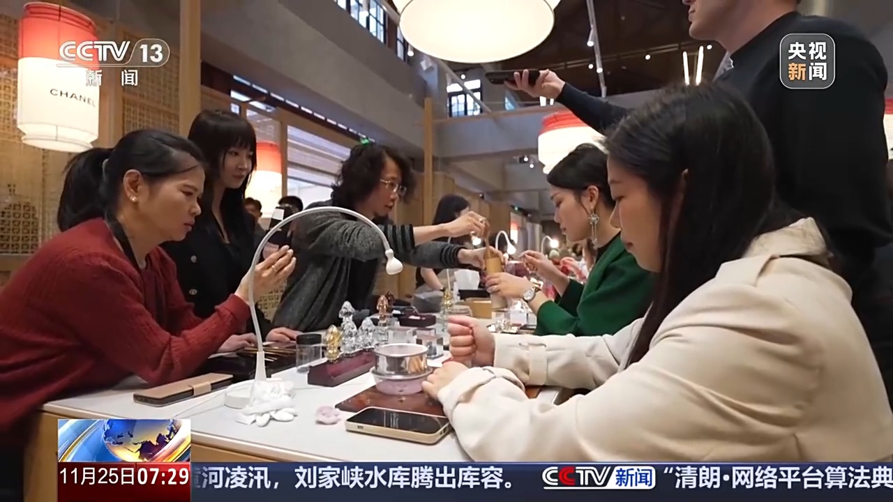 總臺央視記者 高媛:我身后這個不大的空間里擠滿了人,這里聚集了17個來自法國的品牌。它們展出的不只是產品,而是背后的工藝。精美的產品變成了一針一線的故事,觀眾還可以參與其中。