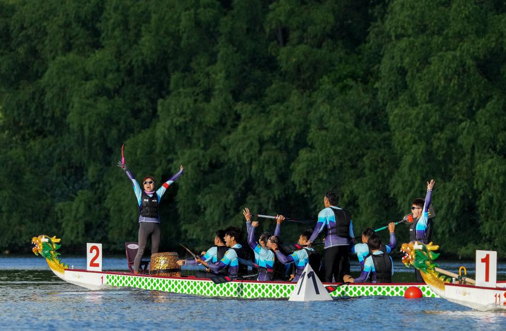 三亞河面上,鼓聲震天、劃槳如飛,加油吶喊聲此起彼伏。經過三天的角逐,龍舟21個項目的爭奪圓滿落幕,貴州隊和廣東隊均斬獲多個一等獎。
