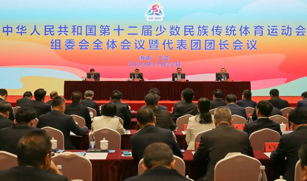 11月22日下午,第十二屆全國少數民族傳統體育運動會組委會全體會議暨代表團團長會議在海南三亞召開。民族畫報社 盧旭 譚宇杰 攝