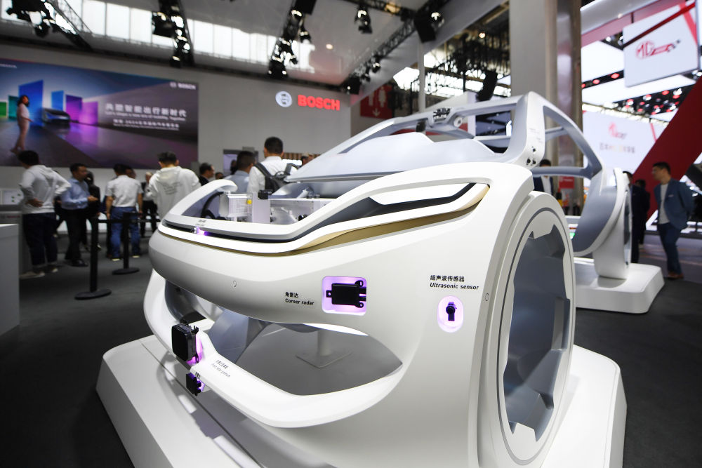 4月25日,在北京車展上,博世公司展臺展出可用于新能源汽車智能出行解決方案的相關產品。新華社記者鞠煥宗攝