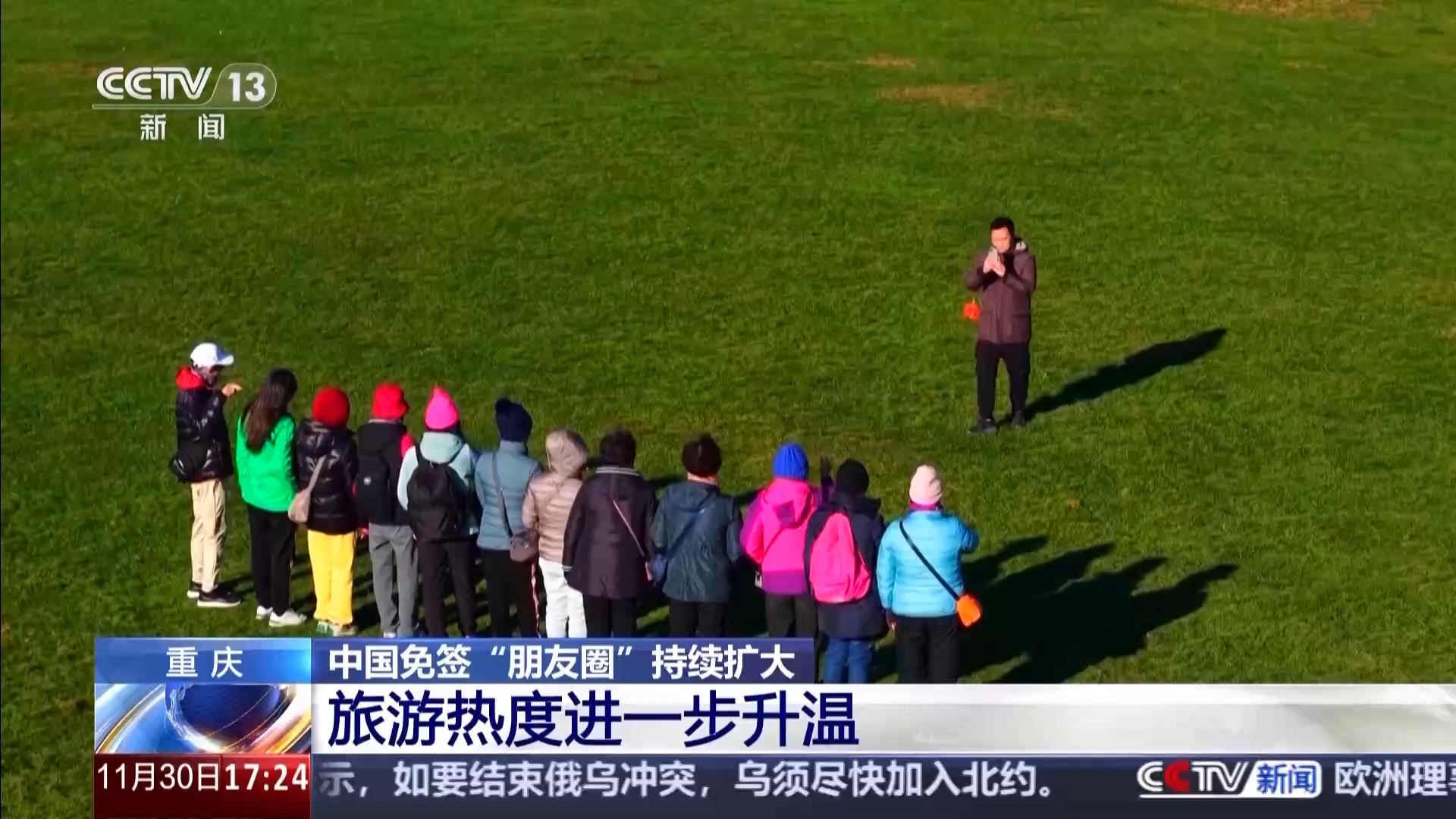 在重慶的著名旅游勝地武隆,各大景區(qū)接待的海外游客數(shù)量明顯增加,這些游客大多來自泰國、新加坡、馬來西亞等國家。29日一大早,重慶武隆仙女山景區(qū)就迎來了來自泰國的旅行團。雖已入冬,仙女山仍然陽光明媚,滿目青翠,遠道而來的游客或欣賞青山綠水,或與草原上的山羊合影,享受愜意時光。