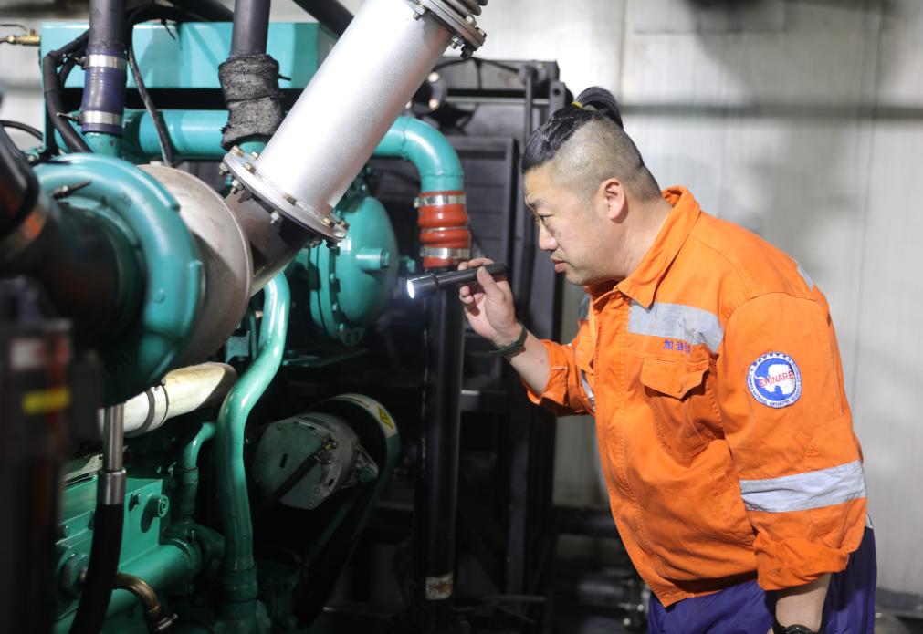 作為發(fā)電班班長,張冬的主要職責(zé)是確保柴油發(fā)電機(jī)組正常運(yùn)轉(zhuǎn),為考察站輸送穩(wěn)定持續(xù)的電力。“發(fā)電棟24小時(shí)需要有人值守,我們?nèi)齻€(gè)人兩班倒,每個(gè)班次12小時(shí)。”張冬說,“值班時(shí)每兩小時(shí)巡查一次,檢查發(fā)電機(jī)組是否有安全隱患。”