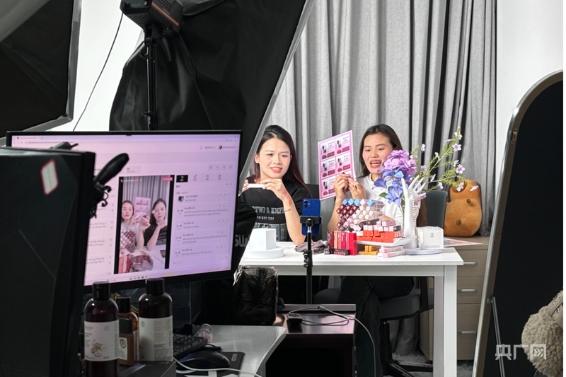 留學生正在基地直播(央廣網(wǎng)記者 楊贇 攝)