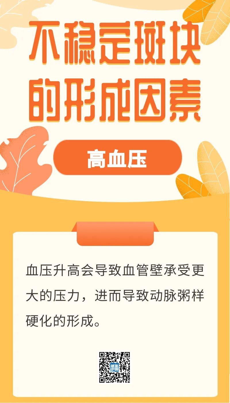穩定性斑塊通常具有較厚的纖維帽、較小的脂質核心和較少的炎癥細胞。這種較厚的纖維帽就像一層堅固的保護層,使斑塊穩固,不易破裂或脫落,因此,引發卒中的風險較低。相反,不穩定斑塊的纖維帽較薄,在情緒激動、劇烈運動、酗酒、寒冷等誘發因素的影響下,可能會發生纖維帽的破裂,導致斑塊破潰和脫落。