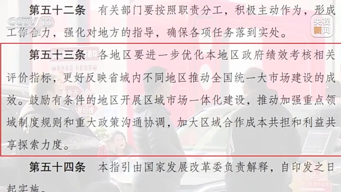 建設全國統(tǒng)一大市場,要求地方政府做到全國一盤棋,破除地方保護和市場分割。但人口和企業(yè)流動,會帶來經(jīng)濟數(shù)據(jù)和稅收的增與減,這也對地方政績考核標準提出了新的要求。為此《指引》提出,各地區(qū)要進一步優(yōu)化本地區(qū)政府績效考核相關評價指標,更好反映省域內(nèi)不同地區(qū)推動全國統(tǒng)一大市場建設的成效。