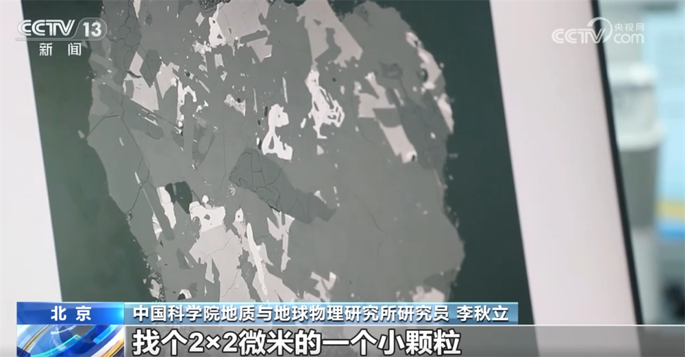 李秋立稱:“我們要在里邊首先找到記錄時間的小礦物,找出來之后變成離子激發出來,它這里邊哪兒是定年礦物呢?要把它放到最小的這一顆白點,是定年礦物。那么這顆巖屑的實物有多大?大概800微米,在這個800×800微米里邊找個2×2微米的一個小顆粒,在這么小的范圍可以激發它的,目前只有離子探針這個技術,我們進行了長期訓練,可以把它做到更小的范圍內測得更準的數據。”