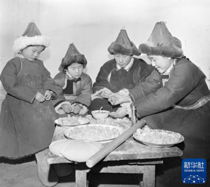 1981年,內蒙古呼倫貝爾牧民正在高高興興包餃子過春節。新華社記者 白斯古郎 攝