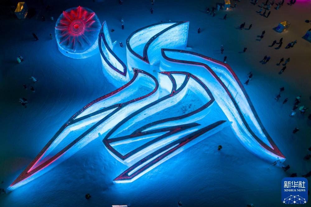 這是2025年1月5日拍攝的第九屆亞冬會會徽冰雕。新華社記者 張濤 攝