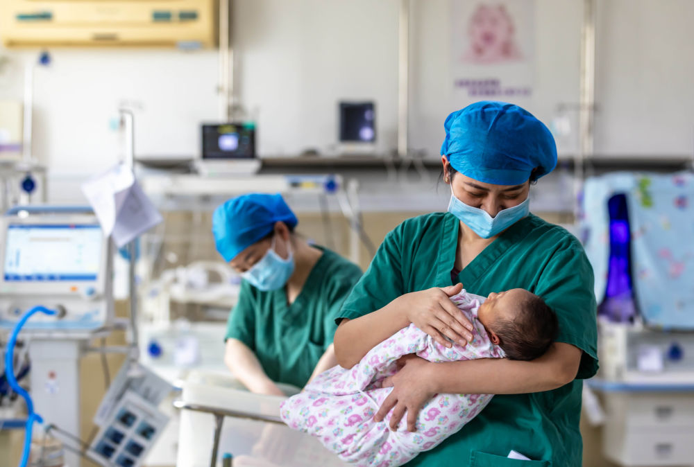 2025年1月29日,醫護人員在貴州省黔西市人民醫院新生兒科為新生兒做日常護理。新華社發(范暉 攝)