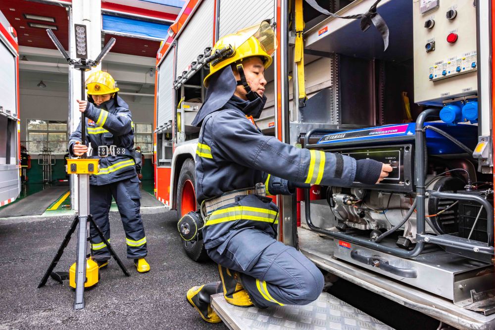 2025年1月29日,消防救援人員在貴州省安順經濟技術開發區消防救援大隊檢查裝備。新華社發(陳熙 攝)