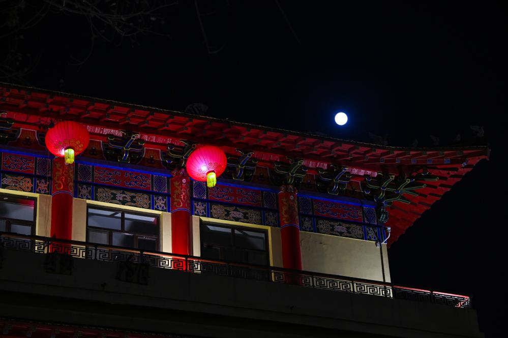 在哈爾濱大劇院拍攝的圓月。新華社記者 趙子碩 攝