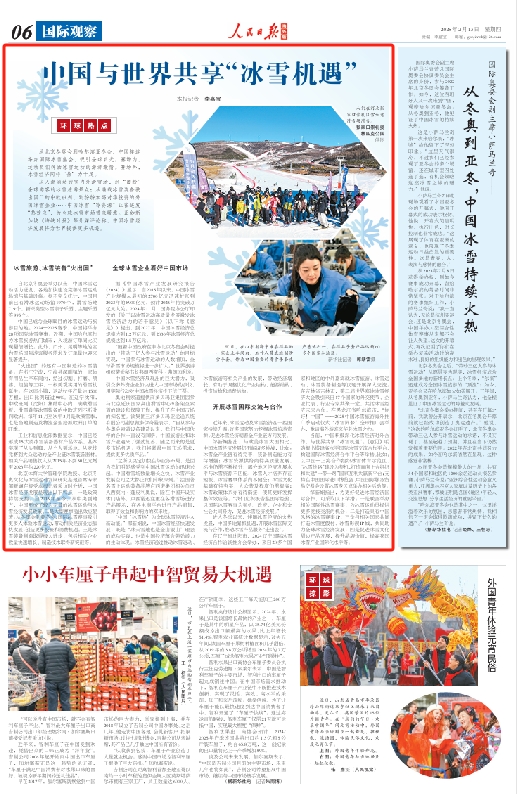 從人潮涌動的室內外滑雪場,到“圈粉”全球游客的冰雪旅游景點;從滿載冰雪裝備駛出國門的中歐班列,到紛紛加碼對華投資的外國冰雪企業……中國冰雪“冷資源”正在迸發“熱效應”,為全球冰雪市場帶來暖意。正如新加坡《海峽時報》等外媒評論稱,中國冰雪經濟發展將為世界提供更多機遇。
