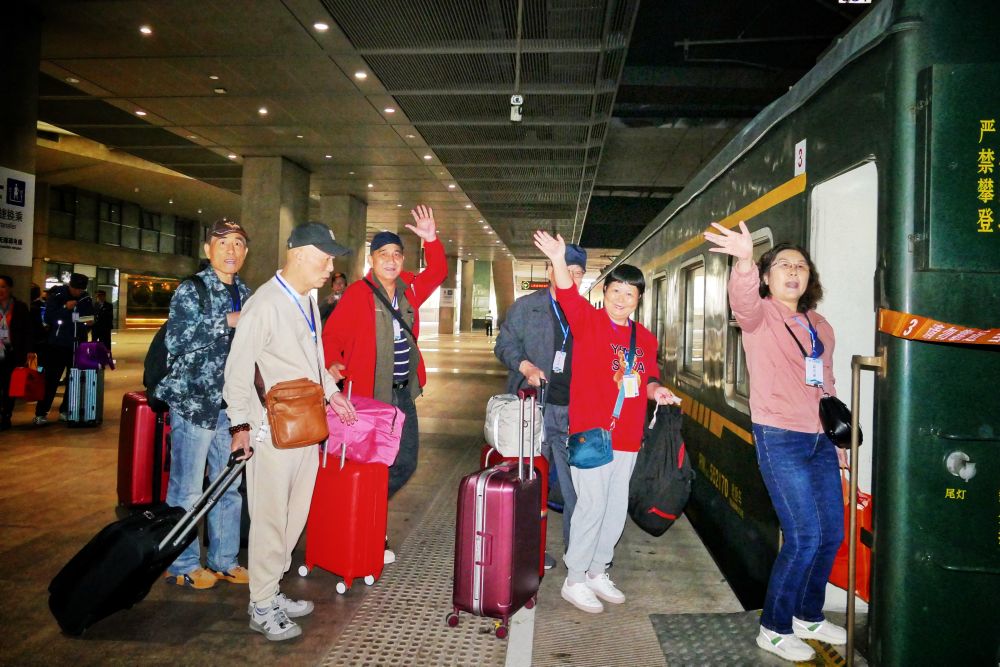 2024年4月20日,銀發旅客在上海南站乘坐專列旅游。新華社發(劉衛興攝)