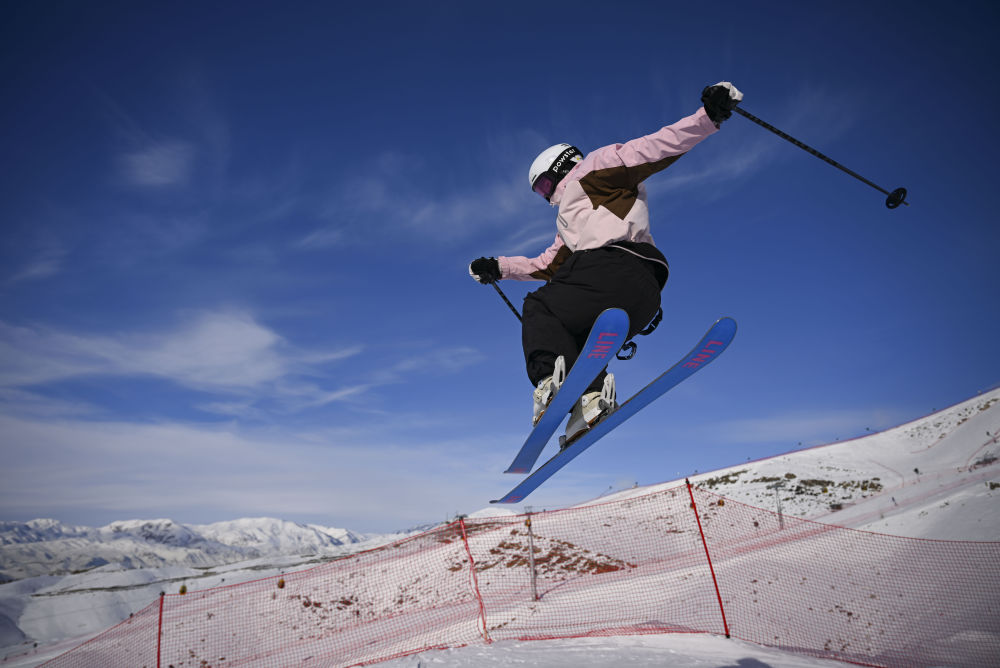 1月28日,即農歷除夕當天,雪友在滑雪公園飛越跳臺。新華社記者 胡虎虎 攝