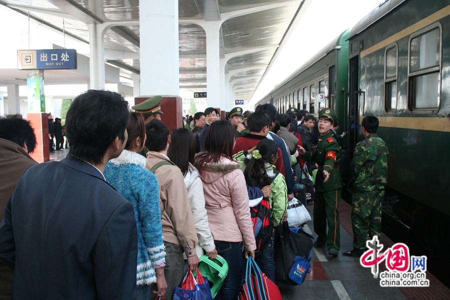 2007春運,旅客在吉安站排隊登乘“綠皮車”。中國網發 南鐵供圖