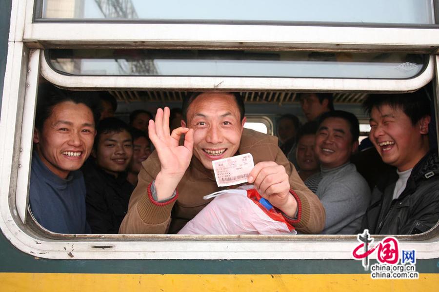 2010年春運,旅客展示自己的火車票。中國網發 南鐵供圖