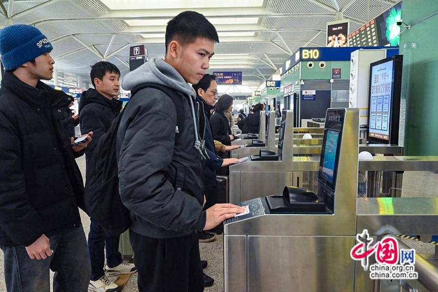 2025年春運期間,旅客南昌西站候車廳刷身份證驗票。中國網發 黃浩/攝