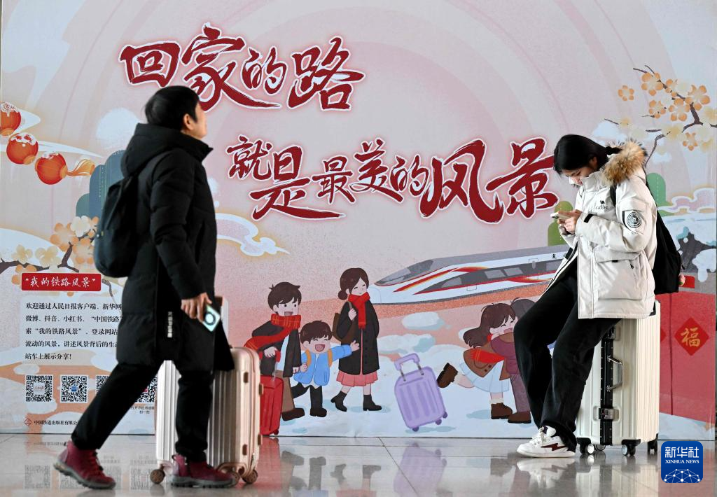 圖為2月22日,旅客在河北秦皇島火車站準備乘車。