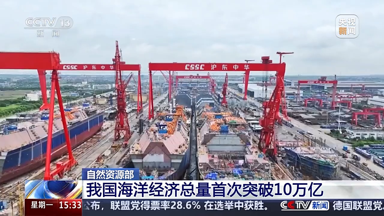 自然資源部今天(24日)發布《2024年中國海洋經濟統計公報》,《公報》顯示,2024年我國海洋經濟總量再上新臺階,首次突破10萬億。