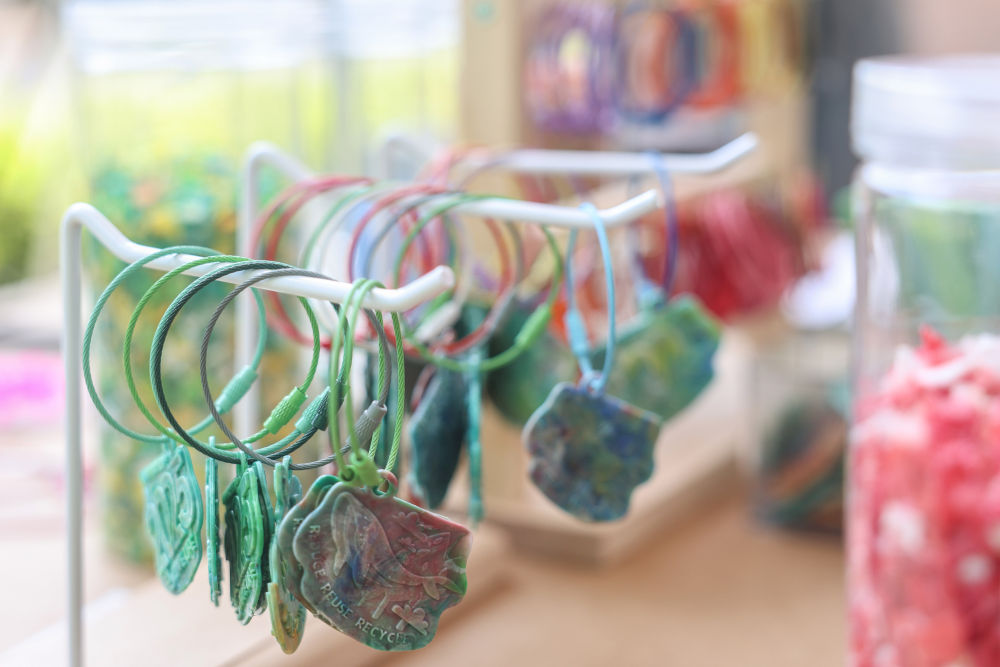 這是3月25日在博鰲亞洲論壇零碳休息區展示的使用廢棄塑料制作的鑰匙扣。
