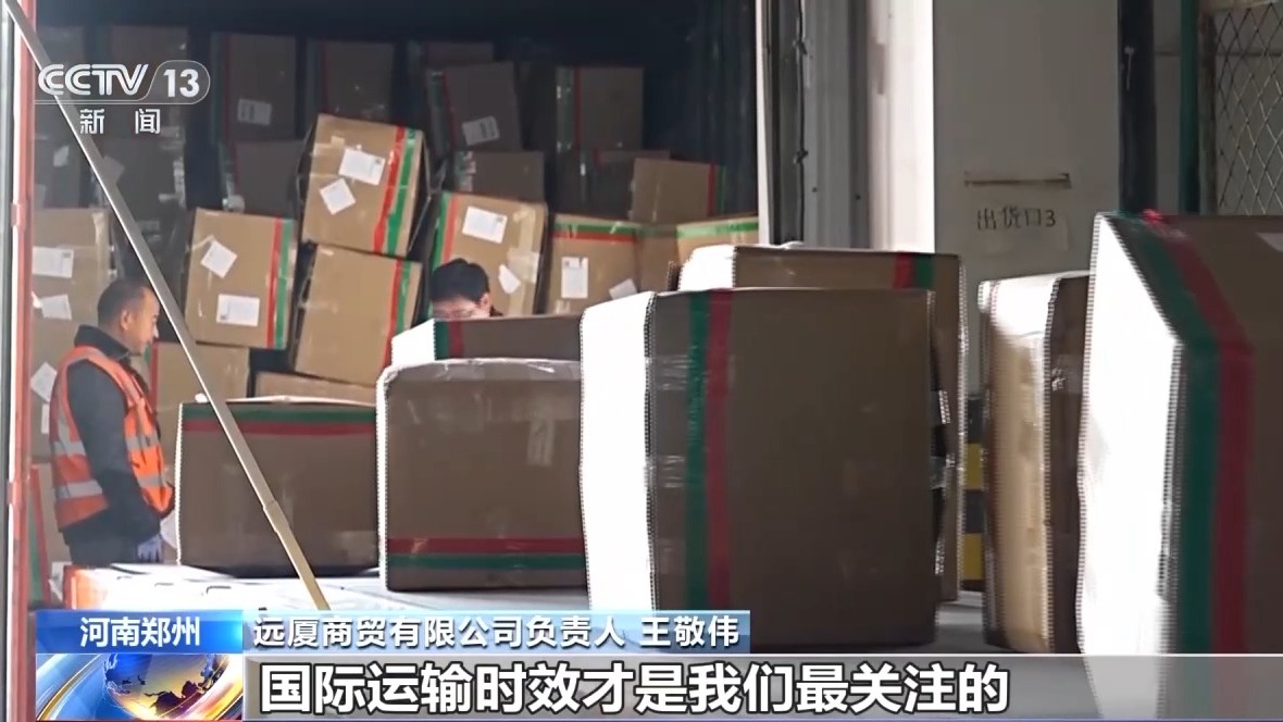 遠廈商貿有限公司負責人 王敬偉:國內運輸成本占整個物流成本是很小的,比如義烏到上海運費是0.5元每公斤,義烏到鄭州運費是0.55元每公斤,占1%都不到。所以對于我們來說,選擇鄭州還是上海都是一樣的,國際運輸時效才是我們最關注的。