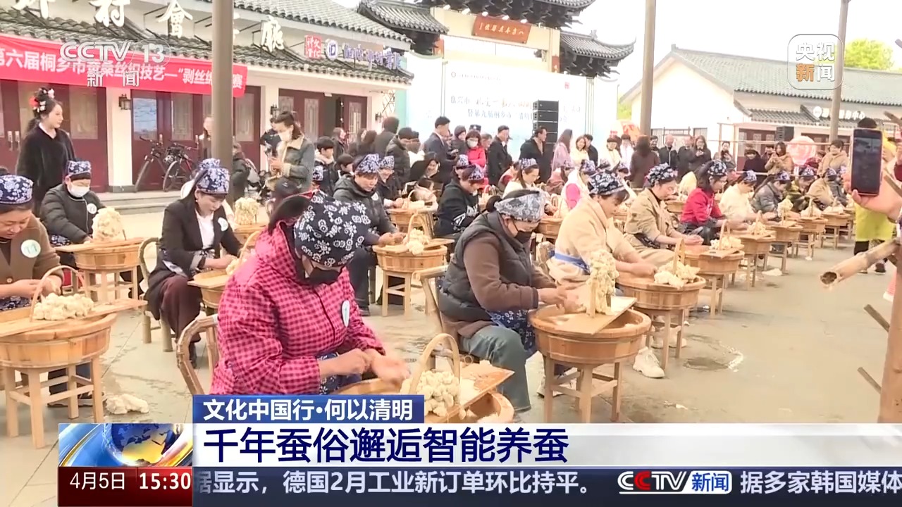 在浙江,流傳著一句俗語——“清明大如年”。浙江是我國絲綢生產和貿易的中心,清明之后,當地蠶農就會開始新一年的忙碌,所以人們通過節慶活動,祈盼養蠶豐收。隨著現代科技的發展,在現代化的養蠶工廠里,采桑養蠶的活動已經可以擺脫節氣的束縛,實現了“季季有春天”。