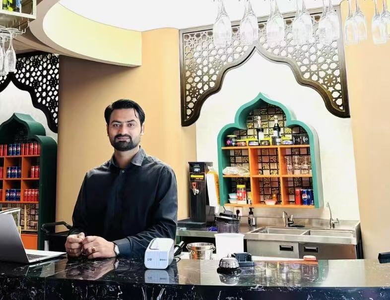 我們在中國的網絡平臺上都會發送電子優惠券,也有一些排行榜把我們店放上去,所以中國消費者就會特意過來嘗試。我們有時也有學生折扣、會員卡的活動。得益于中國的‘過境免簽’政策,我們店里有了更多的外國游客,一些外國游客可能不會用電子優惠券,我們也有一些實體店的優惠活動。最近中國的一些‘促消費’活動我們也參加了,比如在美食節攤位上展示巴基斯坦美食,讓大家都嘗嘗。對于我們來說,不僅僅宣傳了我們的美食,還可以宣傳巴基斯坦文化。現在我們在成都剛開了一家新店,未來我們還想在西安也開一家。