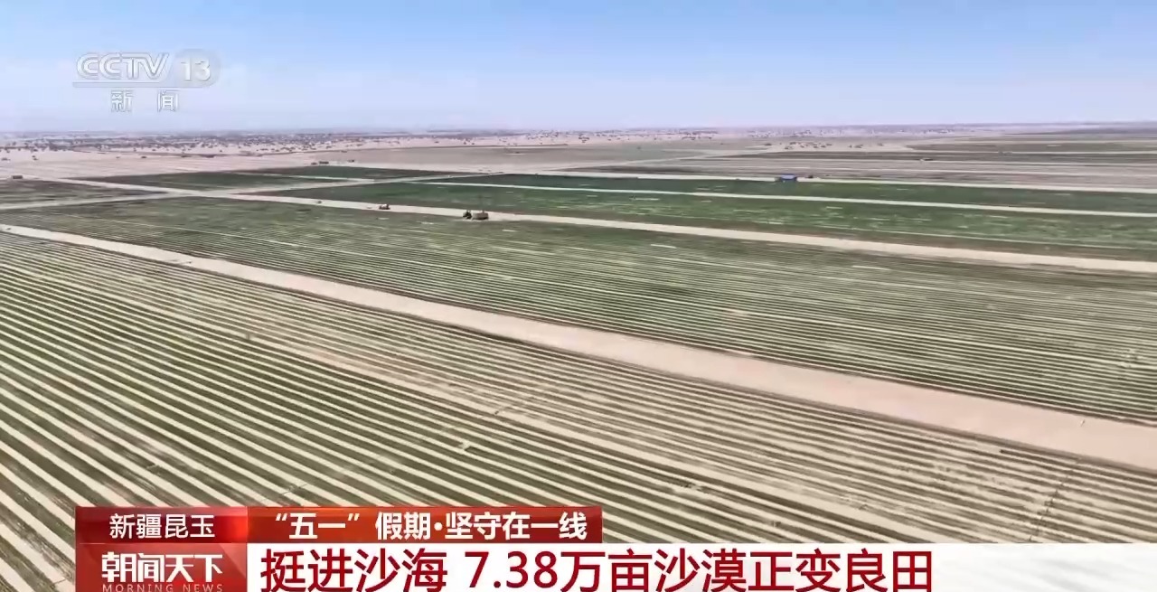 當(dāng)大多數(shù)人享受悠閑的假期時(shí),鏖戰(zhàn)在沙海深處的勞動者沒有停歇。在位于塔克拉瑪干沙漠南緣的新疆昆玉市,7.38萬畝土地開發(fā)建設(shè)項(xiàng)目進(jìn)入攻堅(jiān)階段,上百臺裝載機(jī)、平地機(jī)來回穿梭進(jìn)行平沙作業(yè)。