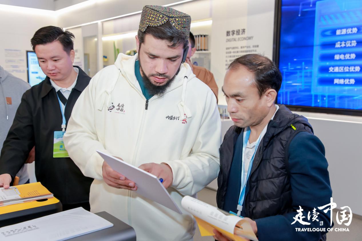 《喀布爾時報》總編尼克馬爾(中)在烏蘭察布(京蒙)人才科創(chuàng)園展廳仔細了解相關(guān)介紹