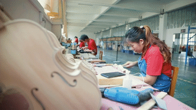 2015年以來,確山縣“筑巢引鳳”,發展制琴產業。王金堂等60余名制琴師陸續返鄉創業。如今,全縣共有提琴生產企業144家,形成從木材處理、配件雕刻到油漆噴涂的完整產業鏈,年產值突破6億元,出口創匯超千萬美元,帶動了2600余人在家門口就業。