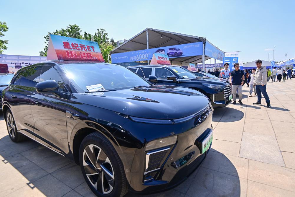 5月3日,消費者在山東省青州市舉辦的汽車·房產家居文化節上參觀選購展出的汽車。新華社發(王繼林攝)
