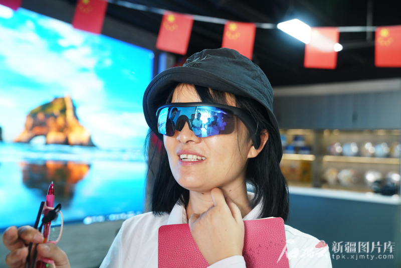 6月30日,在喀什綜合保稅區全球貿易通新疆喀什中亞出口商品選品中心,記者王娜體驗了一款出口的智能眼鏡,該眼鏡可隨機翻譯一百多種語言。