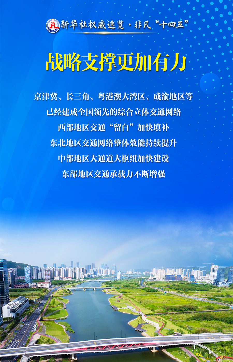“十四五”時期,我國加快建設交通強國實現(xiàn)良好開局。在21日舉行的“高質(zhì)量完成‘十四五’規(guī)劃”發(fā)布會上,交通運輸部部長劉偉說,這五年,我國交通運輸事業(yè)取得了歷史性成就,綜合交通運輸體系建設實現(xiàn)突破性進展。這組海報,帶你去看。