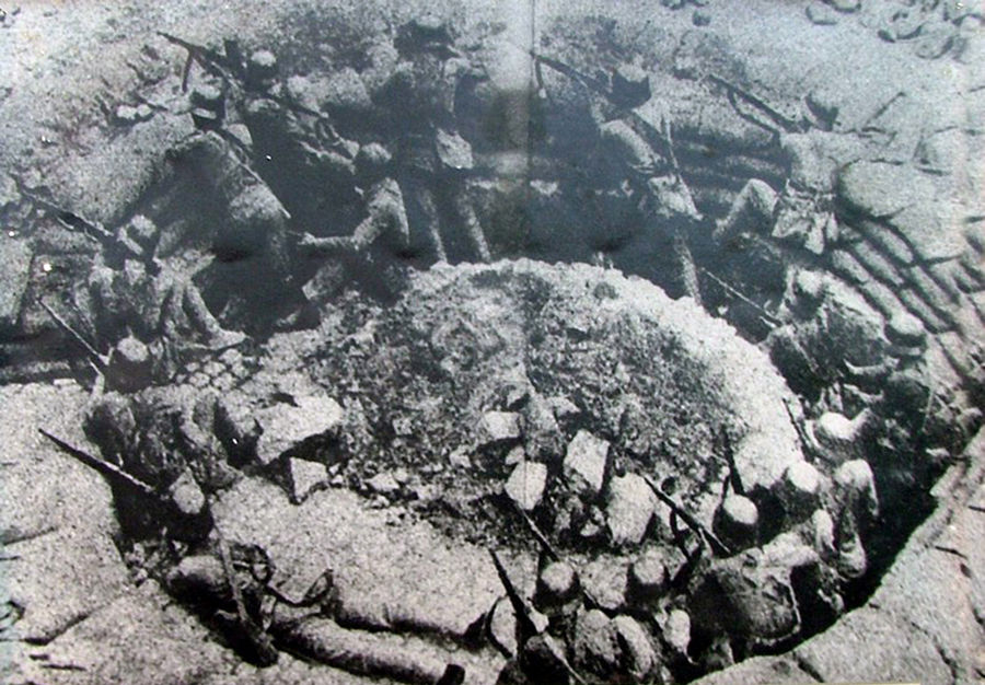 1937年8月13日至11月12日,持續三個月的淞滬會戰粉碎了日本軍國主義者速戰速決的迷夢。這是中國軍隊88師在上海閘北的環形工事里同日軍巷戰。新華社發
