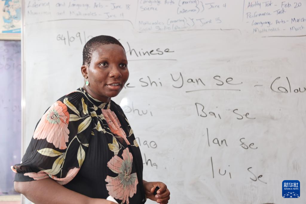 在牙買加首都金斯敦的一間教室里,艾特特殊教育小學校長娜塔莎·拉塞爾在黑板上書寫著與顏色相關的漢字,孩子們端坐在椅子上,跟隨她輕聲朗讀。教室里時而響起整齊的讀書聲,時而響起輕快的中文歌曲旋律。