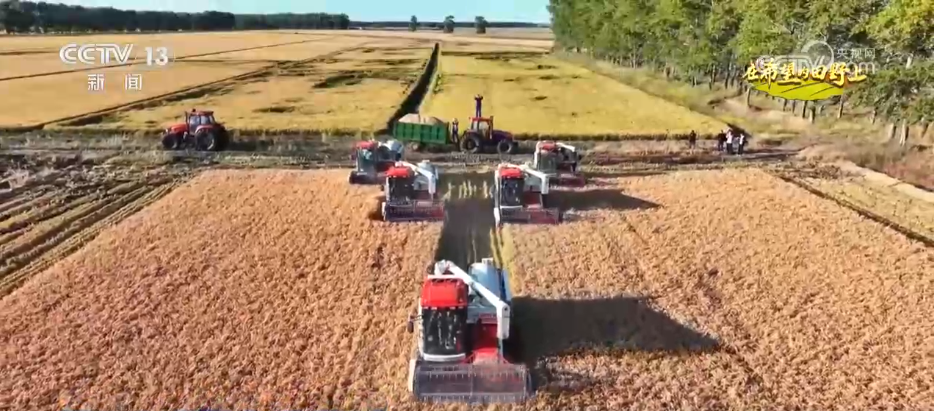 在綏濱縣新富鄉(xiāng)的稻田里,多臺(tái)現(xiàn)代化收割機(jī)正在緊張作業(yè)。伴隨著機(jī)器的轟鳴聲,一排排稻稈被快速卷入收割機(jī),經(jīng)過(guò)脫粒、篩選等工序,飽滿的稻谷源源不斷地從出糧口傾瀉而出,裝入一旁等候的運(yùn)輸車輛中。