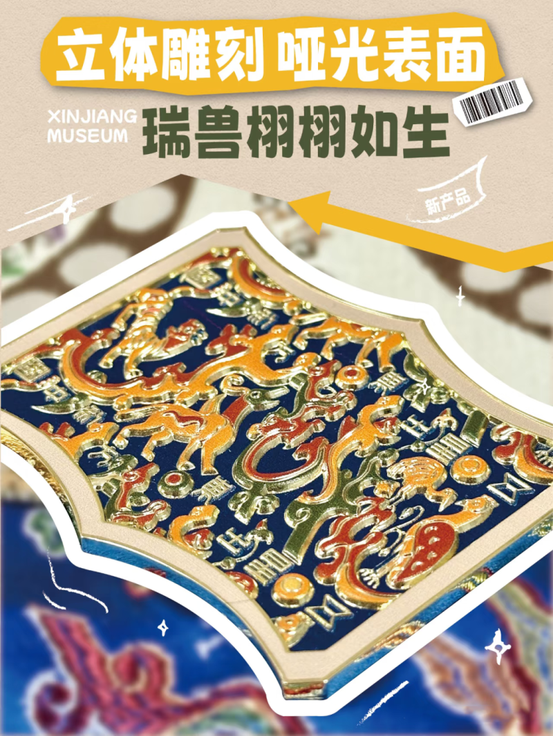 活動緊扣“一帶一路”民心相通主旨,通過文創產品生動宣介了中國新疆社會穩定、民族團結、文化繁榮的良好局面。亮相本次推介會的文創產品兼具文化內涵與實用價值,包括“五星出東方”系列復刻香囊、“疆風如畫”開合冰箱貼、龜茲飛天金屬書簽及館藏織錦鏡,每一件產品都承載著新疆的歷史文化印記,成為傳遞中華文化的鮮活符號。