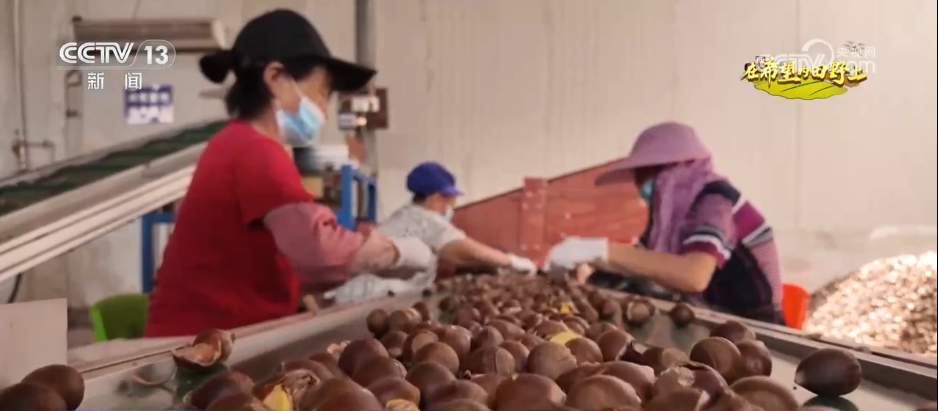 隨著錐栗的豐收,加工企業也忙碌了起來。在一家工廠記者看到,工人師傅們正在對錐栗進行分選、篩檢、加工,廠內一片繁忙的景象。