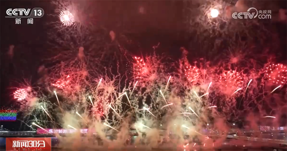 9月30日晚,為慶祝中華人民共和國成立76周年,一場大型光影煙花秀在上海吳淞口濱江上演。伴隨著交響樂,千架無人機緩緩升起,在夜空中匯聚成“歡度國慶”“哪吒鬧海”等圖樣。光影秀之后,絢爛的煙花點亮夜空。