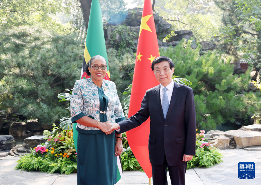 王滬寧表示,多米尼克是中國在加勒比地區的好朋友、好伙伴。今天上午,習近平主席同總統女士舉行會見,就中多關系發展達成重要共識。中方愿同多方一道,以總統女士此次訪問為契機,繼續拓展各領域合作,高質量共建“一帶一路”,推動中多友好關系不斷深入發展。