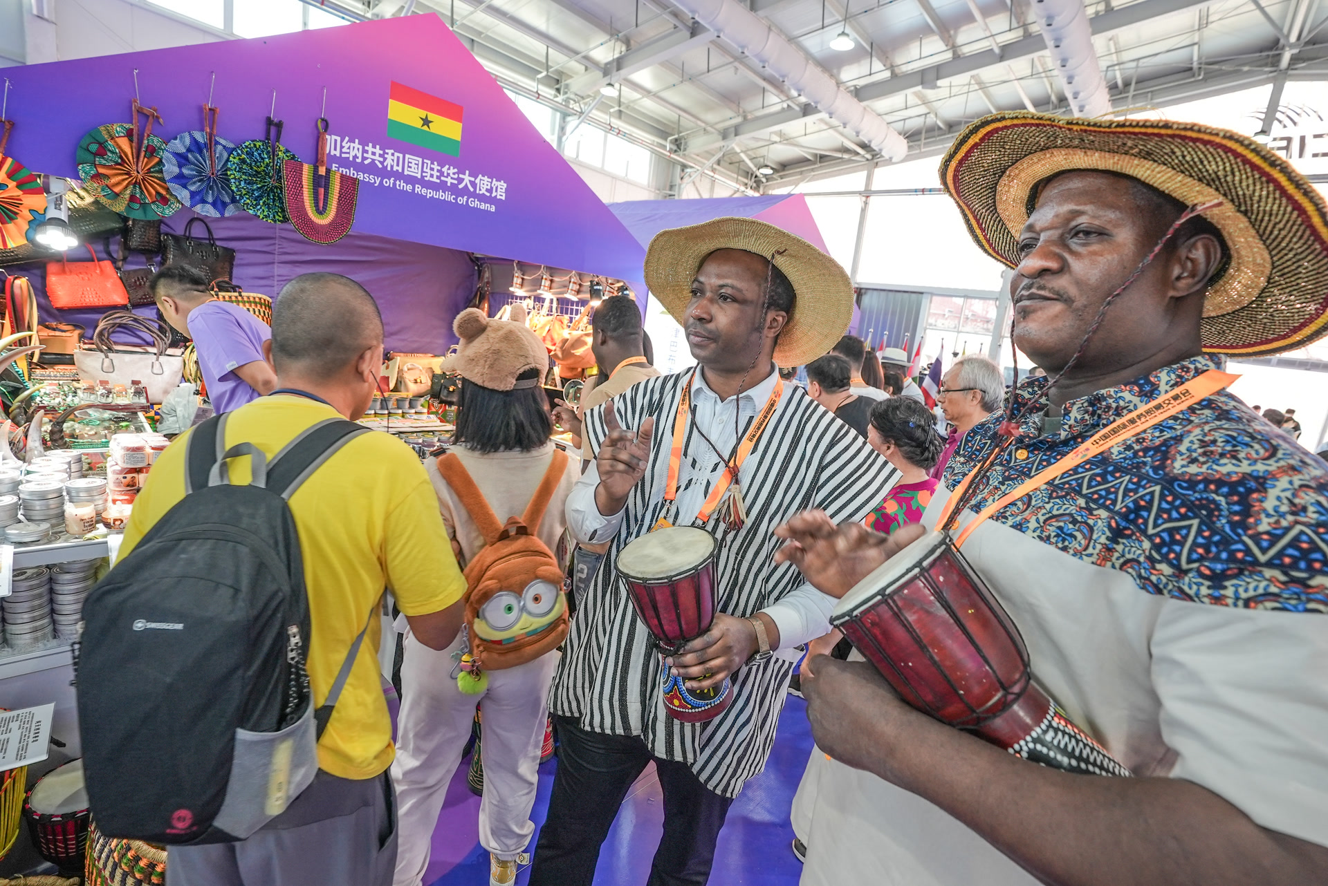 在服貿會首鋼園展區,外籍展商在現場表演,展示本國文化。武亦彬攝