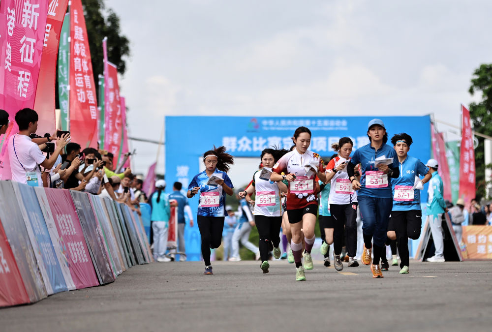 2025年5月8日,參賽選手在廣東云浮舉辦的第十五屆全國運動會群眾賽事女子定向接力賽中出發。新華社記者 黃國保 攝