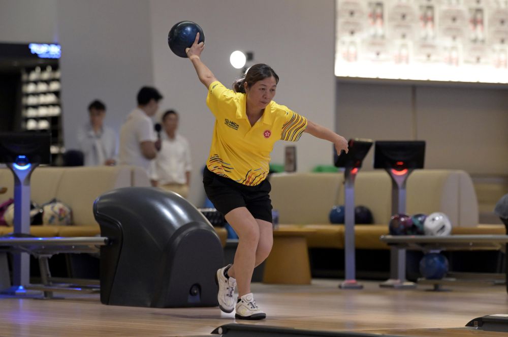 2025年8月11日,香港隊選手陳淑嫻在香港備戰第十五屆全運會群眾比賽保齡球項目。新華社發(盧炳輝攝)