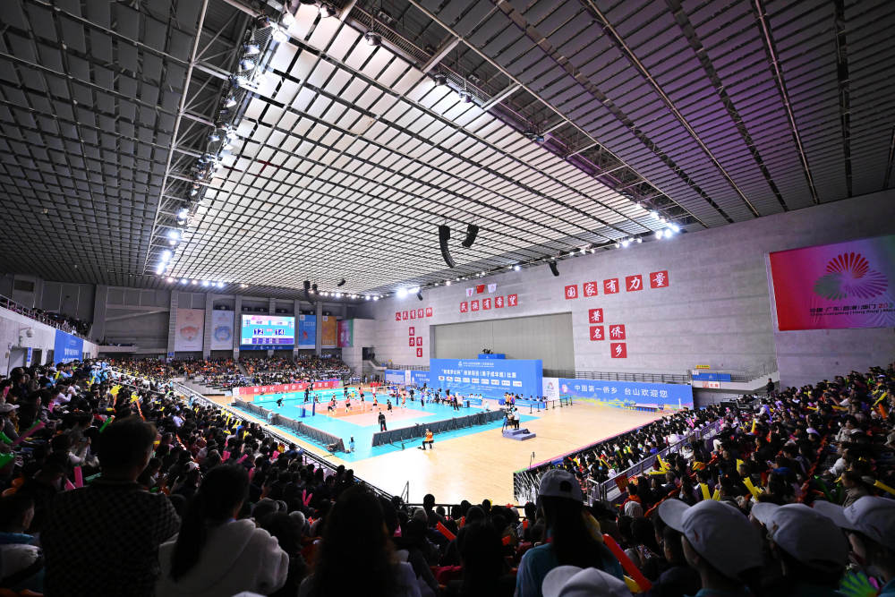 這是2025年11月20日拍攝的在廣東江門舉行的第十五屆全國運動會排球男子成年組冠亞軍決比賽現場。新華社記者 李鑫 攝