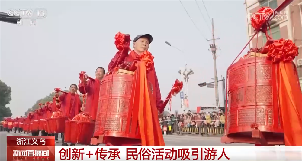 在浙江義烏赤岸鎮,當地通過舉辦民俗文化周系列活動吸引各地游客來這里過元旦,感受新年氛圍。