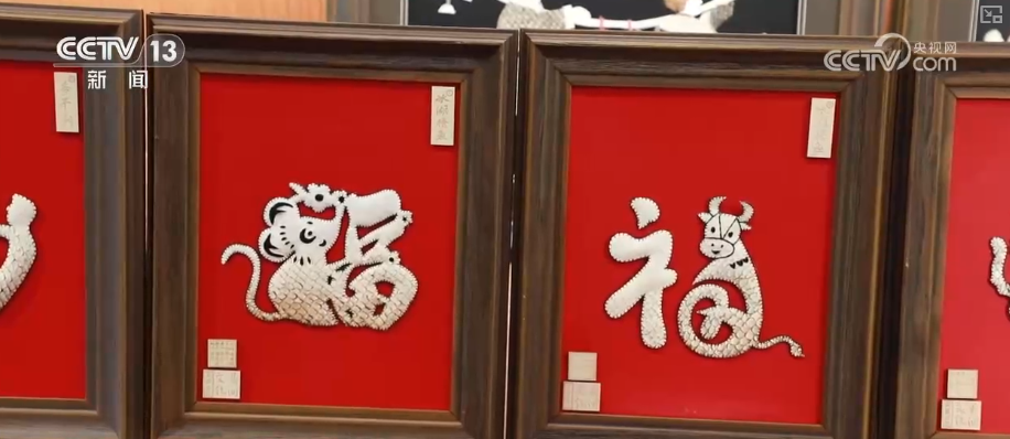 與江南魚燈相映成趣的,是扎根黑土地的吉林省級非遺——查干湖魚皮制作技藝。在“禮遇吉林”非遺體驗店,魚皮經洗料、鞣制、剪刻、拼貼等工序,變身充滿民族風情的精美藝術品。