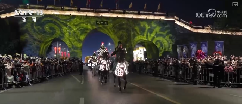更有2026架無人機騰空而起,勾勒出“萬馬奔騰”“鳳凰展翅”光影長卷,讓游客驚嘆。還有為古城墻披上斑斕外衣的荊風楚韻燈光秀,讓大家賞心悅目。光影流轉間,放佛歷史與現代隔空對話。