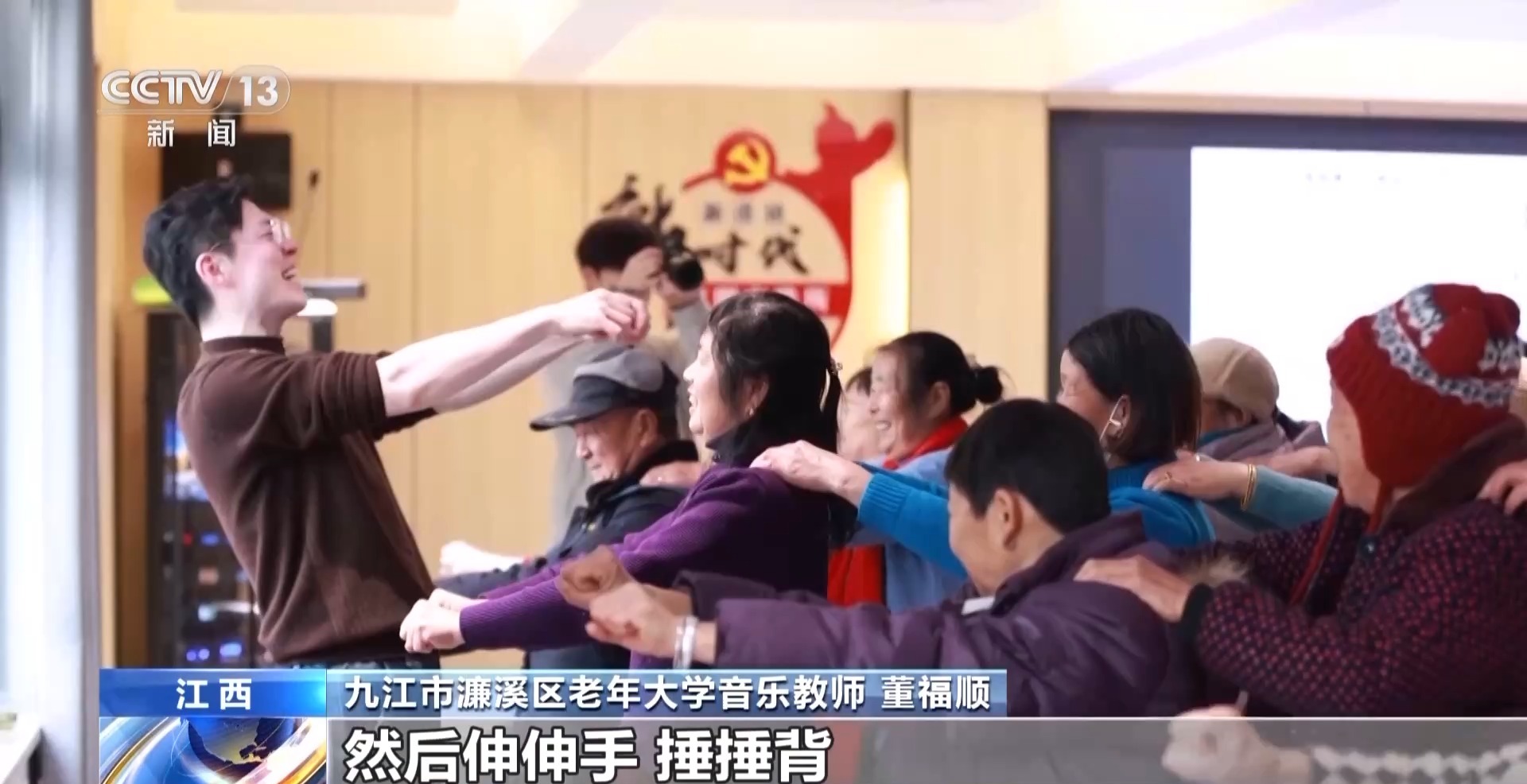 九江市濂溪區(qū)老年大學(xué)音樂(lè)教師 董福順:我覺(jué)得音樂(lè)它是有律動(dòng)的,結(jié)合那個(gè)律動(dòng)再加這些動(dòng)作,然后伸伸手、捶捶背,我覺(jué)得這不就是生活中的動(dòng)作,你把它再帶到課堂里邊兒,帶到音樂(lè)里邊兒,課堂就不一樣。