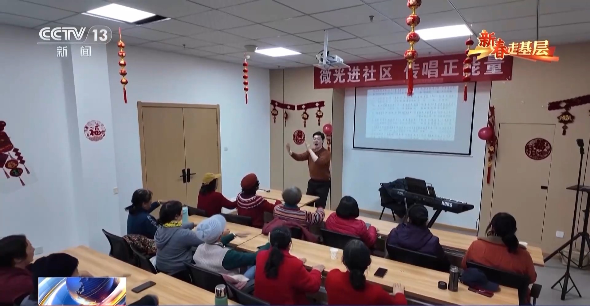 董福順在大學(xué)學(xué)的是聲樂(lè),在九江市老年大學(xué)已經(jīng)當(dāng)了9年的音樂(lè)老師。這個(gè)臘月趁著老年大學(xué)放假,他把課堂搬進(jìn)了社區(qū)、村莊和養(yǎng)老院,免費(fèi)帶大家上課。